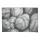 A bucket of baseballs in black and white shot with a soft shadow of the fence on the balls taken as the sun sets during batting practice. The fence shadow stirring up memories of endless summer nights spent on the field.