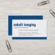 Type is king on this business card. Your company or own name is set in large sans serif type which plays off the colour bar on the base of the card. All type is customizable along with your website or any other pertinent information printing on the reverse against a matching dark blue. A versatile card that can work for a consultant, home business, retail shop or any professional. Available in alternate colours with matching products.
