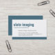 Type is king on this business card. Your company or own name is set in large sans serif type which plays off the colour bar on the base of the card. All type is customizable along with your website or any other pertinent information printing on the reverse against a matching slate blue. A versatile card that can work for a consultant, home business, retail shop or any professional. Available in alternate colours with matching products.