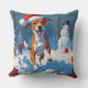 Basenji Dog Playing in Snow Winter Scene Throw Pillow