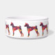 I love this bowl. It's nice and heavy and feels well made. I think Zazzle could make it even better however. This large bowl is actually on the small side for a large dog. I'd love to see one size larger. Also, if you want a colored background, there will be a rather thick strip of white on the top and the bottom. I wish I could have the entire face of the bowl printed in a color. The printing is crisp and clear and does a good job of showing off my Create With Photos running Portuguese Water Dog design.