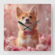Celebrate love with this elegant minimalist design featuring Dog sitting gracefully among pink and red roses, surrounded by pastel hearts. With its clean, modern aesthetic and soft pink tones, this design is perfect for spreading warmth and affection on Valentine's Day.