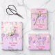 Bashful Unicorn Personalize Name Age Pink Stars 3 Wrapping Paper Sheets