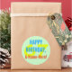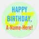 This basic and plain birthday sticker design features a message like "HAPPY BIRTHDAY, A-Name-Here!", where the name can be customized. The birthday number can also be customized. Stickers like this could perhaps be given as a gift to somebody who is celebrating a birthday. [~Z0000256]