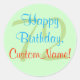 This basic birthday sticker design features a message like "Happy Birthday, CustomName!", where the name can be personalized. The birthday number can also be customized. Stickers like this could perhaps be given as a gift, or perhaps used as decorations, when celebrating somebody’s birthday. [~Z0000256]