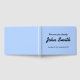 This minimal funeral or memorial guestbook features the message "We miss you already,", and the custom name and birth/death dates of the individual who has passed on. It could be used to record fond memories of somebody who has recently passed away. The text is black, and the background is coloured light blue.