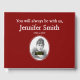 This elegant funeral or memorial guest book features the message "You will always be with us,", along with a personalized name, and birth/death dates. It also features space for a personalized photo. It could be used to record cherished memories of somebody who has recently passed on.