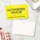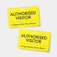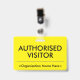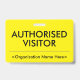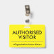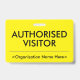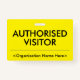 This humble badge design features the message "AUTHORISED VISITOR", and a customizable company name or other custom message. A badge like this could maybe be used to show that somebody at a business or workplace is an authorized guest or visitor. [~Z0000307]
