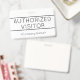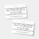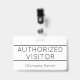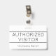 This humble badge design features the message "AUTHORIZED VISITOR", and a customizable company name or other custom message. A badge like this could perhaps be used to indicate that a person is a known and authorized guest or visitor at a business or workplace. [~Z0000307]