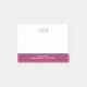 Personalized post-it notepads in white with fuchsia details. Your name, initials, and contact information.