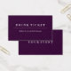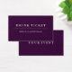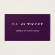 Basic and clean customizable drink ticket in a dark plum colour with a white font and a pale pink dotted line.