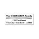 This simple rubber stamp design features a custom family name and a custom address. It also features a decorative row of yen currency symbols.