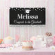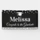 Graduation banner is easily personalized. Pick Your school colour and adjust the text for your graduates name. High School, college, university, trade school, preschool, middle school