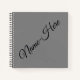 This minimalist notebook design features a grey coloured background and a script-like black coloured name that can be customized. It could perhaps be a fun gift to give to somebody who really likes the colours grey and black.