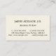 This plain and minimal business card design features a name, profession and contact details that can be personalized. Business cards such as these might be used by a professional such as an attorney or a consultant.