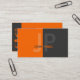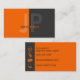 A simple but modern design with a background of orange on the left half and charcoal on the right half. Your name and two initials go on the front and all other information is on the back with matching icons.