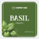 Basil Spice Label Sticker. Ideal for spice jars, containers, and packaging, this sticker adds a touch of sophistication and clearly conveys the quality and freshness of your basil.