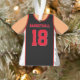 Vérifiez cet ornement fait sur commande noir et rouge personnalisé de basket-ball ! Cet ornement impressionnant de Noël de jersey de basket-ball a le nombre fait sur commande des textes et de jersey que vous pouvez changer ! Couleur de la peau légère. Éditez l'avant et texte arrière aussi bien que le nombre de jersey pour créer celui d'un ornement aimable de jersey de basket-ball ! Créez votre propre ornement de jersey de basket-ball ou recréez votre jersey d'équipe de basket préféré ! !