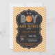 Basketball Baby Shower Invitation. It's a Boy. Chalkboard and Orange Chevron Background. For further customization, please click the "Customize it" button and use our design tool to modify this template.