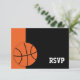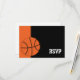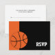 Modern orange and black basketball themed Bar Mitzvah RSVP response card.