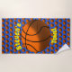 Basketballs make up this fun beach towel. Customizable so you can add your own text and change the background colour. Soak up the sun with this cool design!