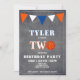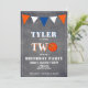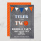 Cute Chalkboard Basketball Birthday Invitation for boys 2nd Birthday // Cute basketball birthday party card for the 2nd birthday. The design has a large basketball and bunting flags in orange and white colours on the chalkboard background. The back side has a stripe pattern on an orange background. Personalize this birthday invite with a child`s name and a photo and personalize all the data on the invitation. Great as a 2nd birthday party invitation for boys.