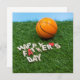 Basketball Happy Fête des pères Card avec basket-ball et mot sur l'herbe verte