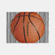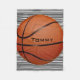 Basketball Design Fleece Blanket featuring a basketball on a striped background, with customizable personalization and background colour.