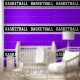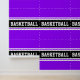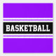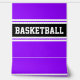 This fun sporty design features athletic BASKETBALL text inside a horizontal black centre stripe adjoined by twin white racing stripes against bright purple outer edge stripes.