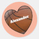 This heart shaped basketball design is ready to add your own name or any text for a personalized round sticker.