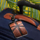 Pleasantly surprised at the quality of the luggage tag. It was exactly as shown and my daughter will be pleased. The address label on the back of the luggage tag was neat and clear.