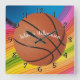 Basketball personalize with Name Colourful Square Wall Clock