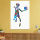 Watercolor-style artwork of a teenage basketball player in mid-air, holding a ball in an energetic pose. The vivid splashes of colour and dynamic composition emphasize motion and athleticism, making it a striking stretched canvas print for contemporary spaces or sports-themed interiors.