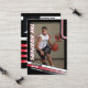 Presenting our customizable basketball trading cards, ideal for parents to showcase their young athlete's achievements on the court! With a striking colour scheme of red, white, and black against a bold background, these cards make a statement. Personalize the front cover photo with your own budding star, and tweak player stats, bio, and position details to perfection. Flip to the backside to fine-tune shooting hand, bio, height, age, and position for a complete profile.