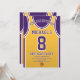 Celebrate your special day with this Basketball Jersey Birthday Invitation, designed for true basketball fans! Featuring a bold jersey design inspired by the iconic purple and gold colours, this invite is perfect for kids, teens, and adults who love the game. Personalize it easily with your name, age, party details, and even team number in just a few clicks. Available in multiple sizes, printed on premium quality paper with a wide range of finishes to match your style. Choose from different paper types, fast printing, and quick shipping so your invitations arrive on time. Whether it’s for a sports-themed party or a Lakers fan celebration, this invite is the perfect way to get your guests excited.