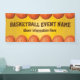 Basketball event banner with basketballs border at top and bottom, gold blend background, and your custom text and name. For school basketball team, tournament, event promotion.