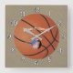A great clock for all basketball fans -- young or old. The design features a large basketball image on a beige, textured background with placeholders for a name and a small photo. The name text is easily changed by using the template. For other desired changes (different type font, colour, size or placement) select "Personalize this template" then select "Edit using Design Tool." Also use the design tool if you wish to change the size of the basketball image. Check out the options section on the right for different clock styles and for a different colour of clock hands (black or grey).