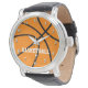 Basketball watch with custom text Custom wrist watches for basketball fans and players. Personalizable Birthday gift idea for men and women. Sporty design with orange basketball.
