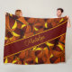 This sporty basketball team colours fleece blanket features a pattern of varied size basketballs turned every which way - two of the panels on some of the basketballs have been recolored--one maroon and one gold - customize with her name on a full width angled maroon colour strip - by katz_d_zynes