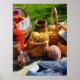 If you know someone who loves to sew as a hobby or whose profession is a seamstress or tailor, this design of baskets of colorful yarn at a flea market ready for sale would make the perfect gift.