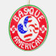 Basque cross, with USA flag, and lauburu motifs and the text Basque American. In red and green.