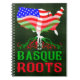 Map of the USA with flags of the Basque Country and American blended into it with the text Basque Roots in red and green.