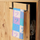 Do you like music theme kitchen accessories? This kitchen towel has a pattern of bass clefs done in pastel yellow, pink, blue, turquoise and purple.
