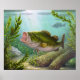 A big-mouth bass fish in a near magical setting of grass and sparkling sand. By Amanda Diehl, Paxdomino Designs.