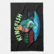 Bass Fish Wearing a Crown on a Black Background Kitchen Towel