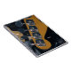 For anyone who loves the bass guitar, the bass line, the bass player, the design on this Notebook will say so. The image on the notebook cover is an original photograph by ZoeSPEAK of guitar tuning pegs on an electric bass. In shades of silvery metal, blonde wood and darkness, the photo is a closeup view of the back of the head of the bass guitar. The four tuning pegs fill the width of the image, and the curved blonde wood of the bass stands out against a dark background. There is a hint of a similar style lead guitar behind the pegs, at the top of the photo, and flashes of light reflecting off of the pegs and other instruments. There is light grey text which reads, "Notes". This can be changed or deleted if you wish.