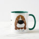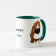 Basset Dad mug with a big nose front view of a cairn terrier on one side of the mug and their adorable rear end back view on the other side of the mug. Background Colours and Text can be changed. Just click on Customize It button.