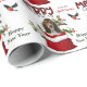 The repeated pattern on this cute Christmas wrapping paper is an image of an adorable Basset Hound puppy dog peeking out from a red and white Holiday gift bag. Behind him is a sprig of holly and red berries. A red and black bullfinch bird is about to land. Stylized red and black buffalo plaid text says MERRY CHRISTMAS", and "Happy New Year" is in dark green. Your own signature is in two fields for you to customize.