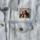 Basset Hound in a Santa Hat Oil Painting 2 Inch Square Button