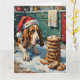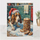 Basset Hound Sniffing Christmas Cookie Trail Hat Card